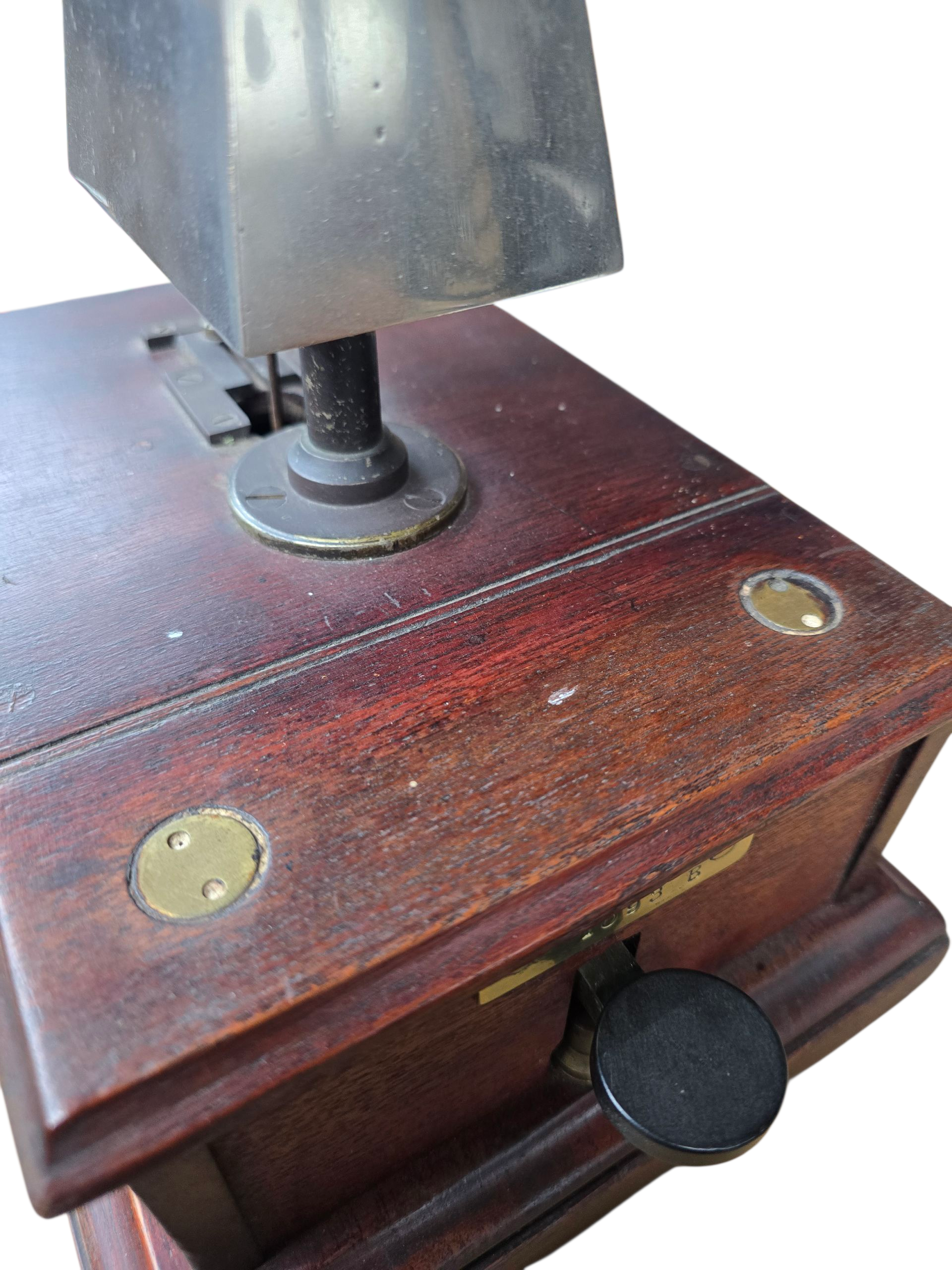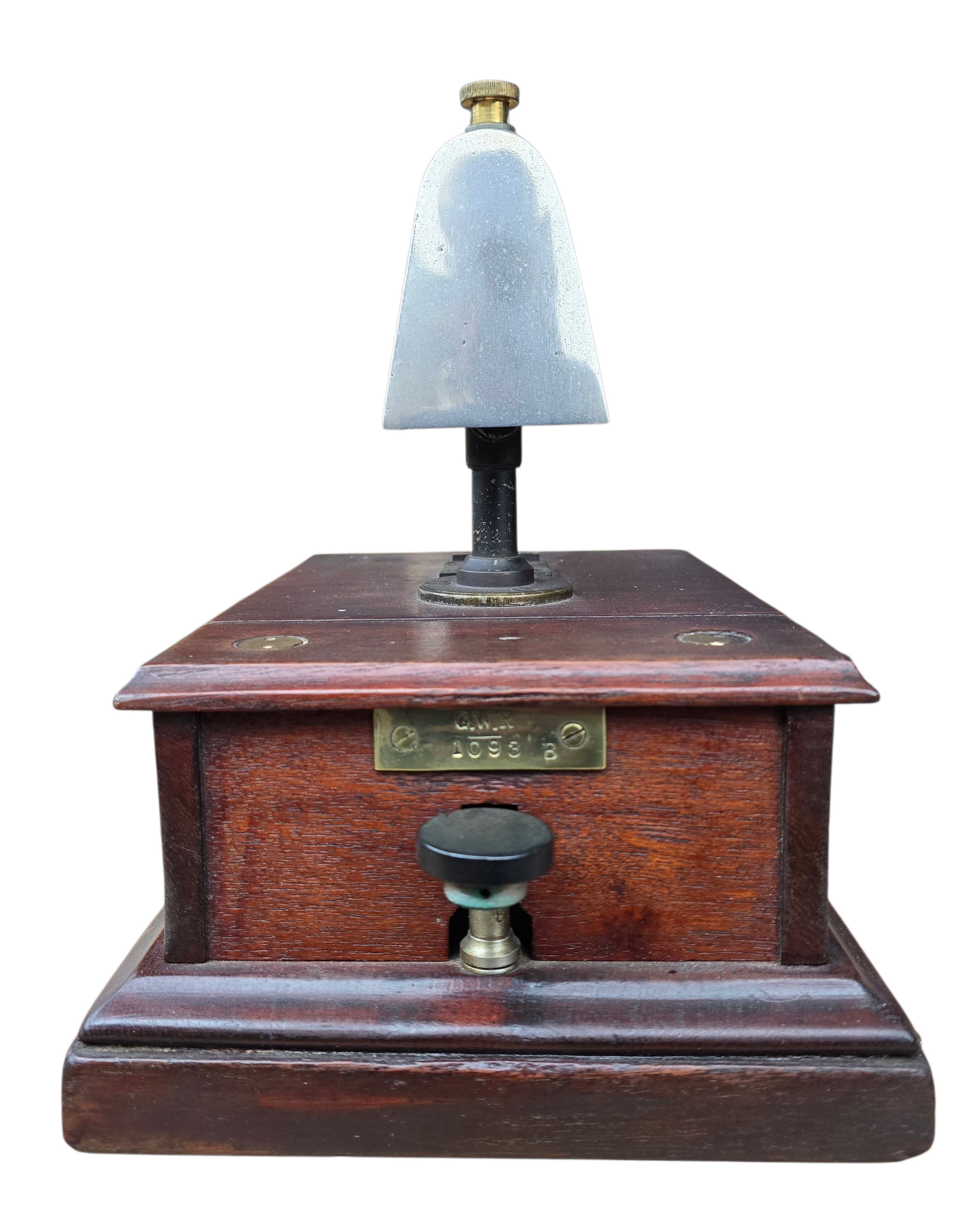 A nice early pattern example of a Great Western Railway manufactured split case block bell, these split case bells were mostly converted with a one piece lid. The purpose of the removable front portions were intended for the signal lineman to carry out routine maintenance on the instrument with removing the lid with its bell thus prevent its operation. The idea didn't actually work out and most were converted. This bell is in totally original condition and well over 110 years old and in full working order. Particular nice is the G.W.R. brass registration plate is present!