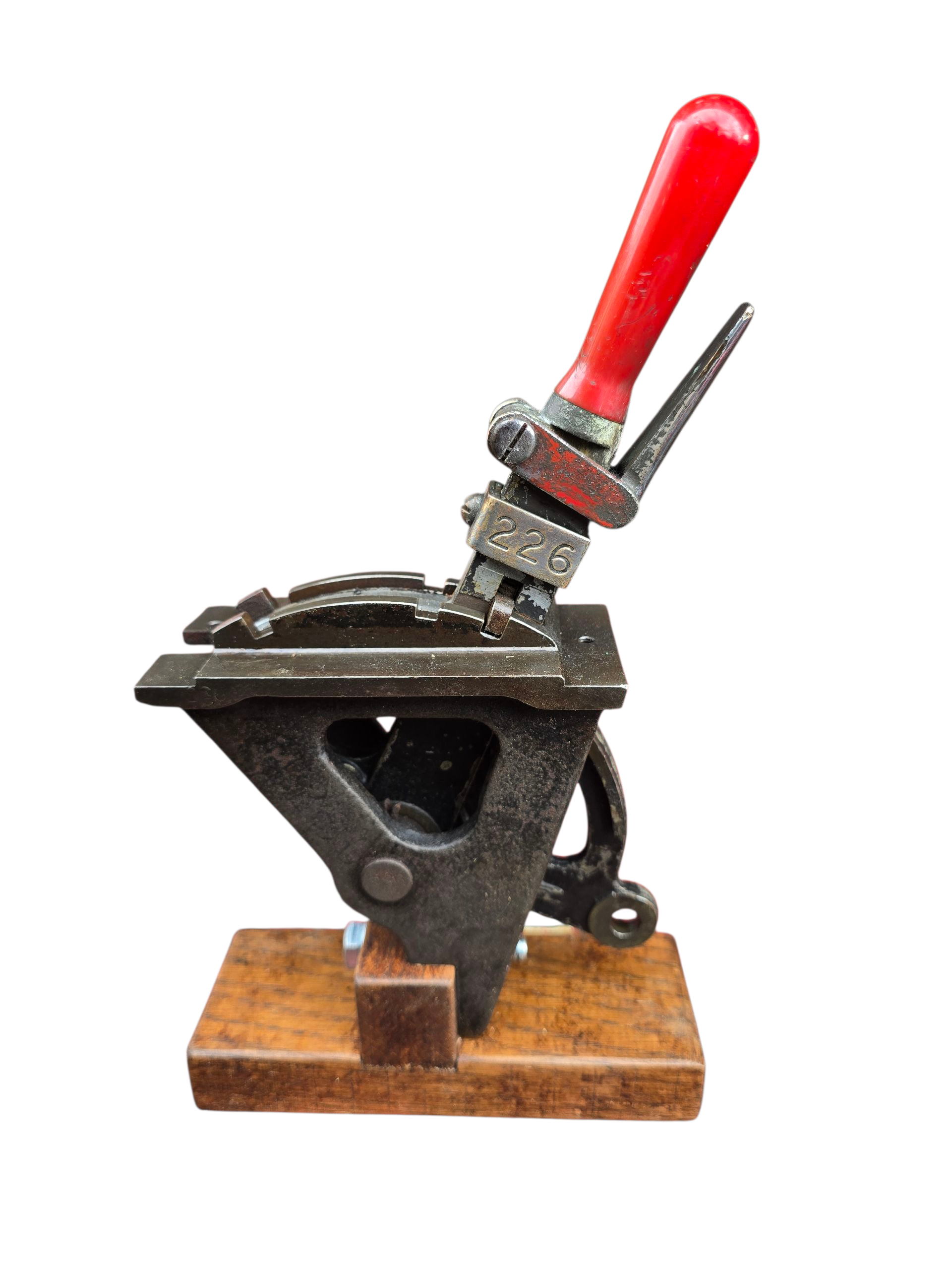 A rare opportunity to own one of the superb 1930s miniature power frame levers, we believe this was manufactured by Siemens Brothers and General Electric Railway Signalling Company. Similar frames like this were installed in Newport West and East boxes, Birmingham South and North also used this type. This lever is in excellent condition and we have made made a suitable Oak display base which is designed to allow other levers to be placed beside them. This example still has its brass number plate No 226 .Dimensions are width over assembly 2", height of lever including base plate 9 1/2" and depth of frame 4 1/4".