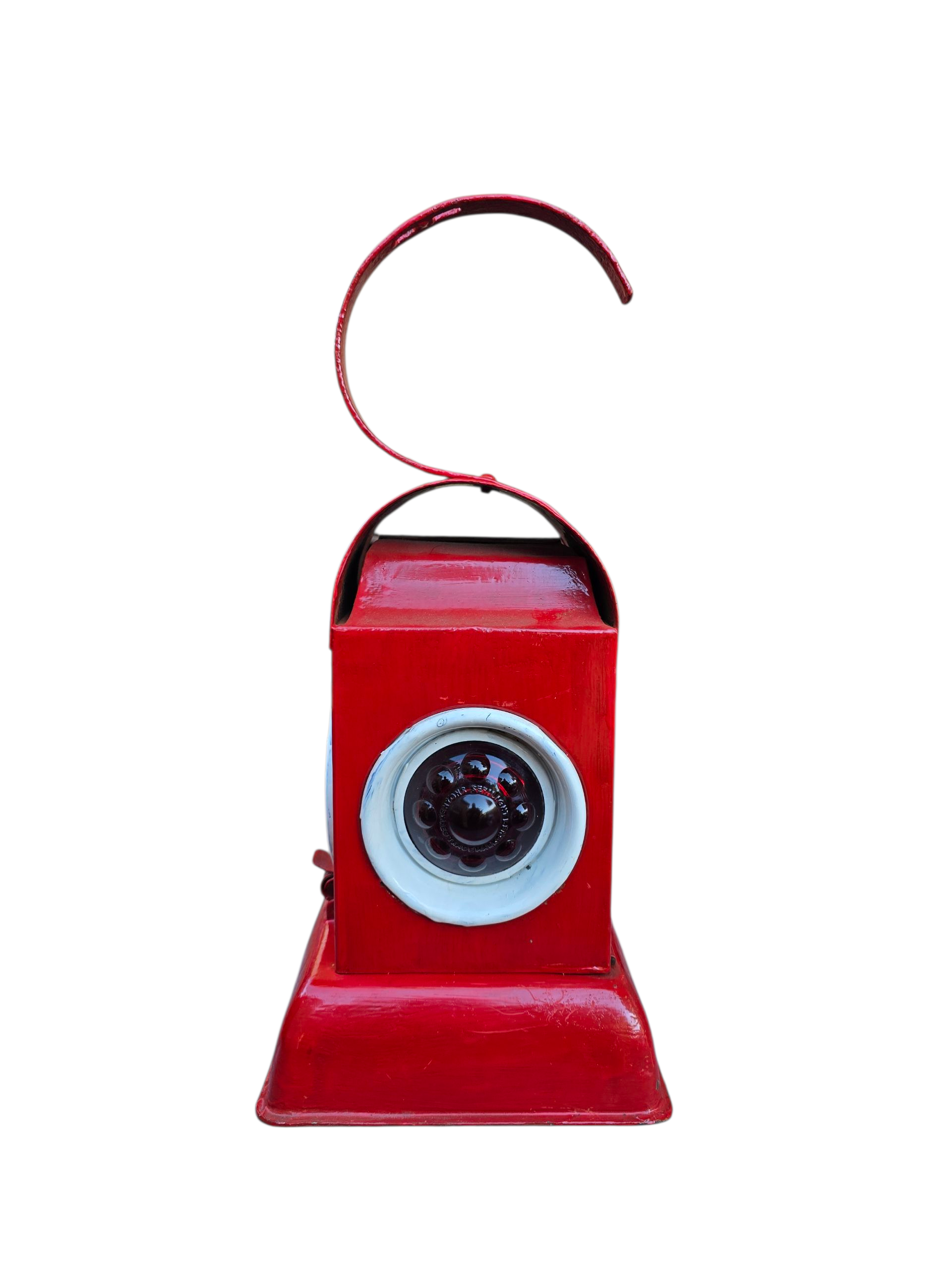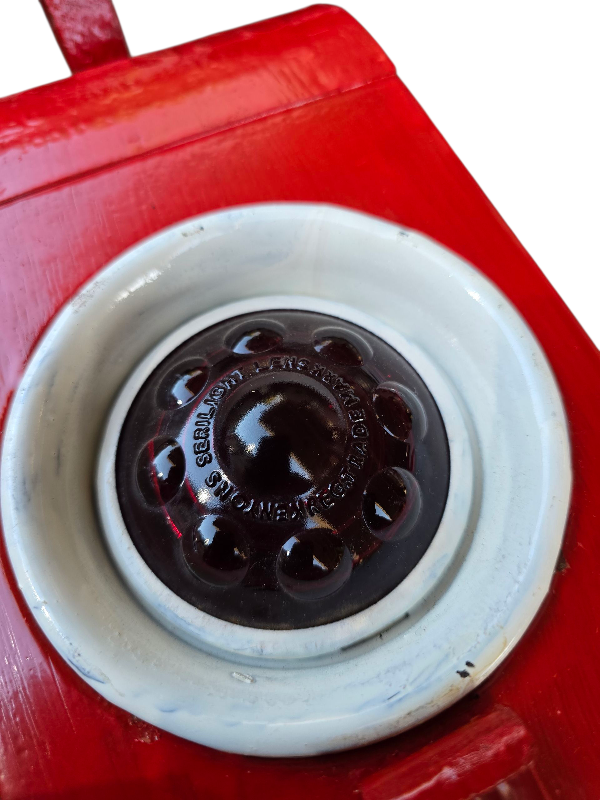 A Kenyons "Akenco" flip top road lamp in good overall condition and restored, the top is embossed with the company's name and patent number with a date of 1963.