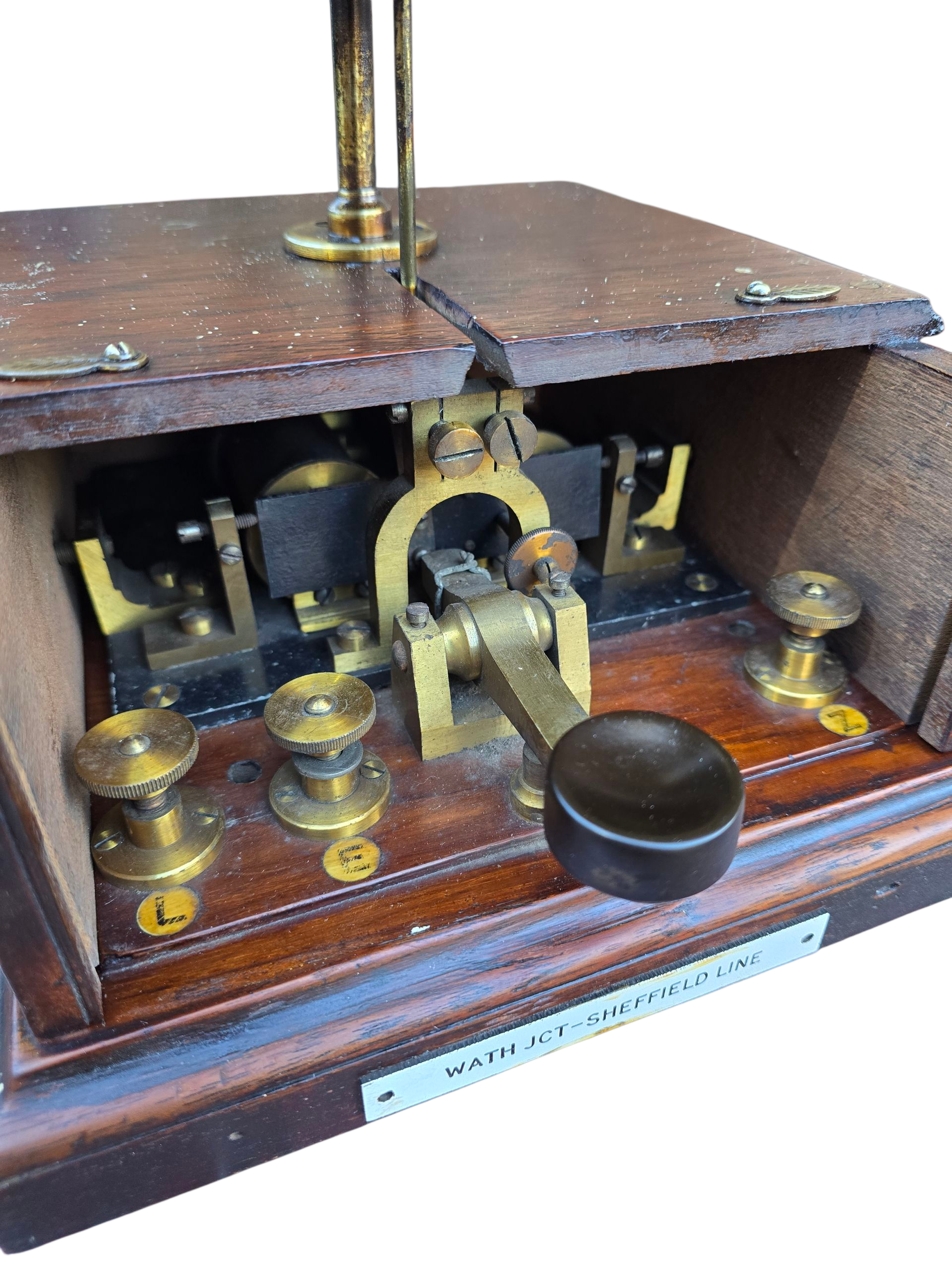 A Manchester , Sheffield & Lincoln Railway style block bell plated WATH -JCT-SHEFFIELD LINE, Wath Junction was a significant junction in South Yorkshire, part of the former Woodhead Line connecting Manchester and Sheffield via a route that included the Wath concentration sidings. This bell is in excellent ex railway service and in tested working order.