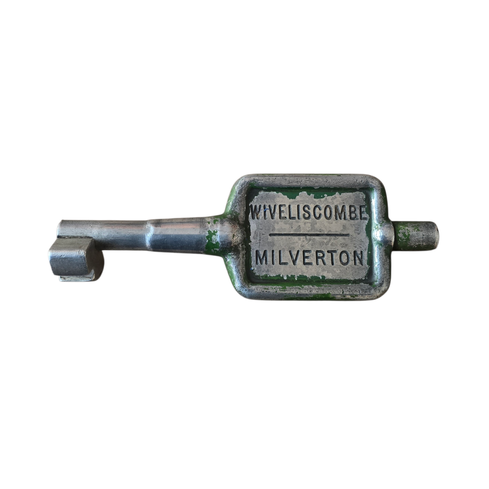 This single line key is from the long closed and much loved Taunton to Barnstaple line, this example WIVELISCOMBE -MILVERTON is one of the nicest place names of the entire route. This is a first generation key meaning it hasn't been reused from another section and has the earlier larger font. This key is a "C" pattern configuration.