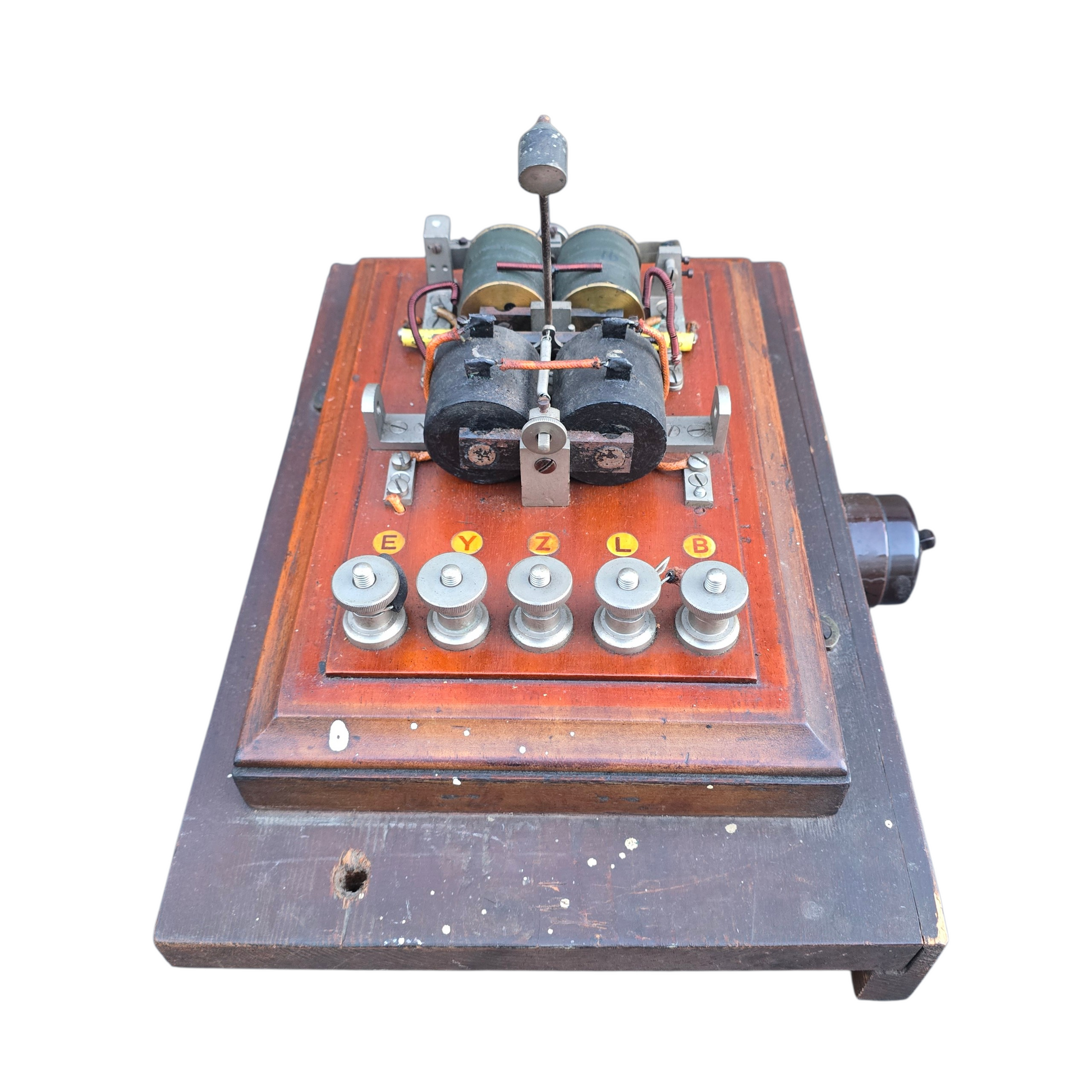 A superb complete G.W.R. non-tapper "E.T.S." block bell plated BRAUNTON-MORTEHOE, the shelf is fitted with a Bakelite switch allowing the bell to be switched to the COTTAGE or SIGNAL BOX. In full working order the is a unique display to grace any signalling collection.